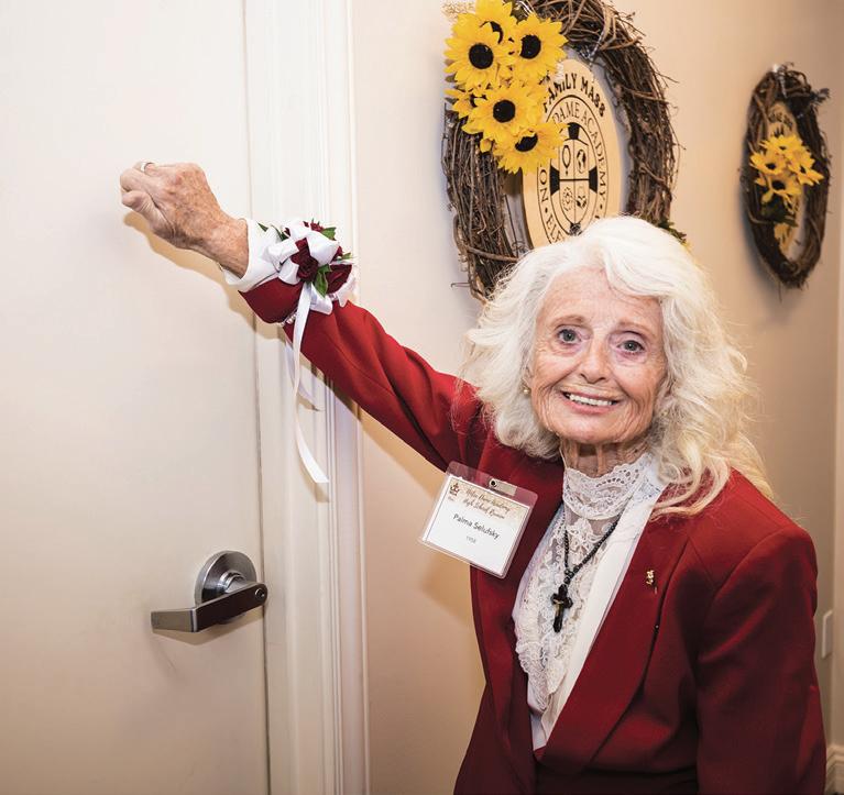 A chance meeting changed those plans, though. She met her husband, Ron Selufsky, when a friend invited her to play in a volleyball tournament at St. Gerard’s Church. After discerning her vocation on a retreat, Palma and Ron were married and shared more than 60 years together before his passing in 2019.