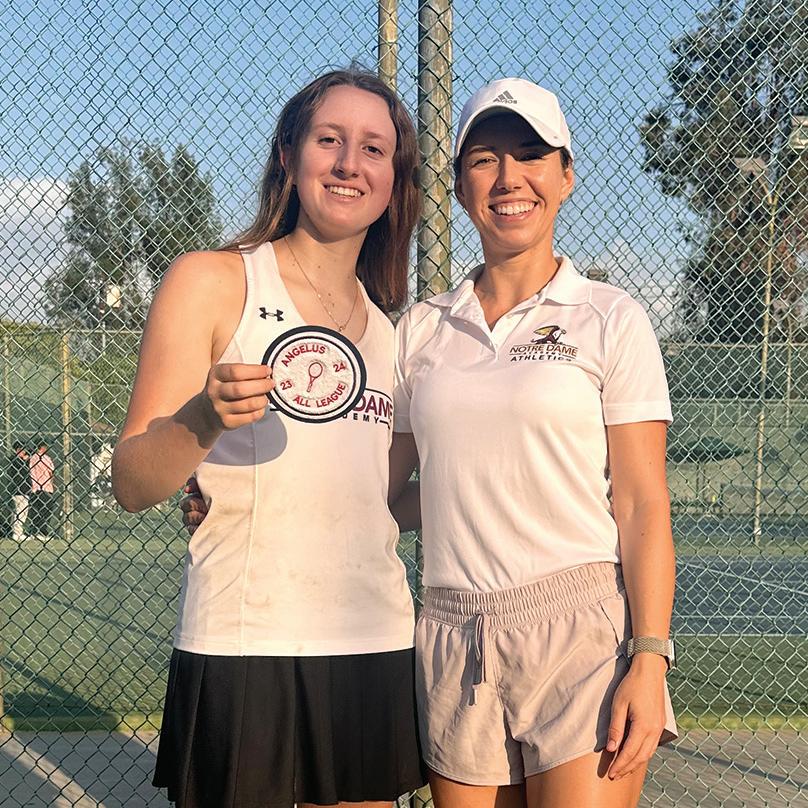 Tennis saw Amanda N. ’25 (pictured above with coach), take the Angelus League Singles Runner Up title at league finals. Led by first year head coach and former world-ranked player, Ilinca Stoica, Amanda was able to qualify in singles for the CIF - SS Regional Playoffs. Coach Ilinca, Amanda, and a talented young team return next season to push the program even further.