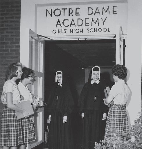 1960 By the end of the 1950s, Notre Dame Academy reaches its capacity enrollment with a curriculum that includes a full four-year college preparatory program along with classes in home economics and business.