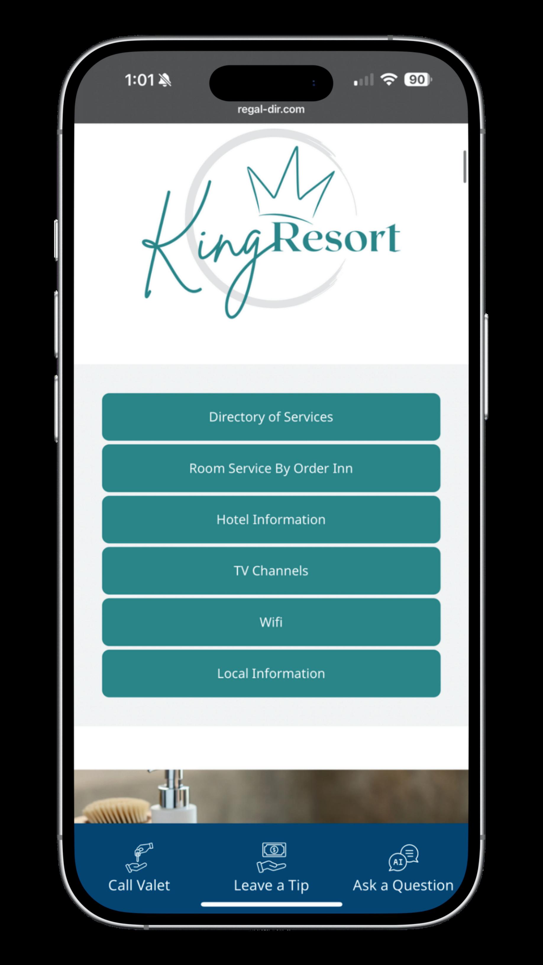 The Regal custom digital directory is accessible by QR code and is also presented on tabletop displays (see below) in every room. Scan one of the QR codes below to see the user experience.