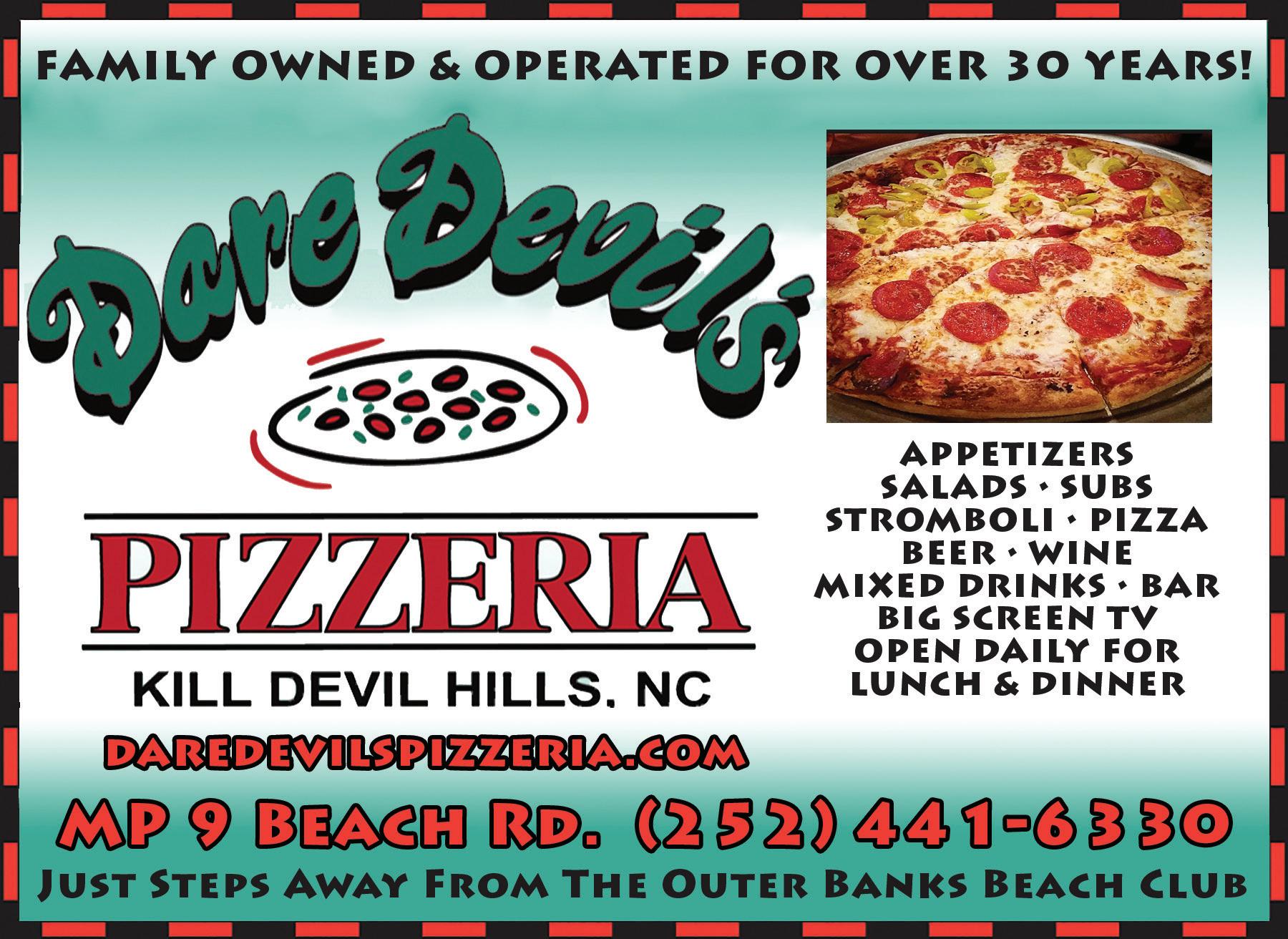 PAGE 5 DINING & ENTERTAINMENT DINING & ENTERTAINMENT DAREDEVILSPIZZERIA.COM 252-441-6330 • MP 9 Beach RD.