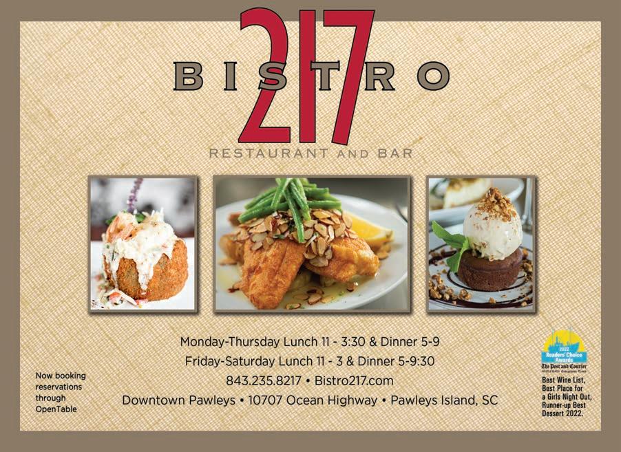 PROOF.: 6 Advertiser: bistro 217 Publication: F-M 23 Please read this proof carefully for spelling, copy and layout errors. PLEASE REPLY ASAP TO: Tonya@GrandStrandMag.com Any changes or adjustments from original advertisement may result in additional ads@grandstrandmag.com • www.grandstrandmag.com PAWLEYS ISLAND PAWLEYS ISLAND PAGE 22