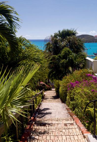 These stairs lead from Kongens Gade up into a canopy of trees at Blackbeard’s Castle’s foot. The steps were constructed using ship-ballast brick in the mid-18th century. The view at the top impresses. Explore in the cool of the morning, before the cruise-ship crowds arrive.