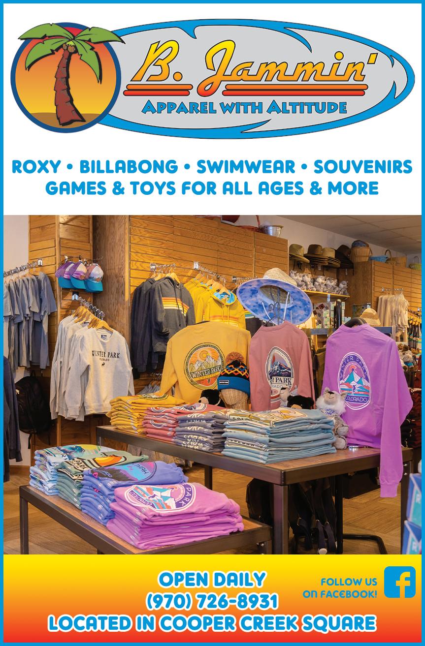 DINING, ATTRACTIONS & MORE! We are Conveniently Located in the Zephyr Mountain Lodge at the Base of the Winter Park Gondola Winter Hours: 7 Days a Week - 8am-8pm Call for Summer Hours B. Jammin’ Inc. - Visit All 3 of Our Great Stores!