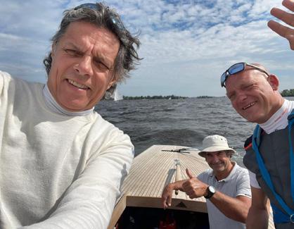Naast de Boog hebben ze nog een 22-kwadraat en een Lemsteraak. Te varen is er dus in de spaarzame vrije tijd genoeg. Het trio hult zich in de nieuw aangeschafte teamshirts en Ido maakt een teamfoto.