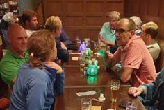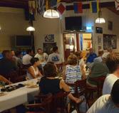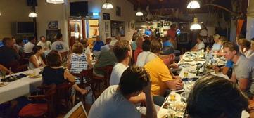 Op naar de feestavond in It Foarûnder. Het happy hour begon om 17.30 uur en was druk bezocht. Oud bemanningsleden van mij en alle deelnemers genoten van de borrel en de muziek van Johnny Kamminga. Zijn oom Thierry kwam ook nog even I am sailing in het Fries zingen (Ik wol sile). Leo hield zijn toespraak