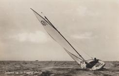 “Ja…., aparte mensen, vaak met een eigenzinnig karakter, non-conformistisch. Ik wil niet zeggen vechtersbazen maar je moest niet op hun tenen gaan staan. In die tijd werd er geregeld gewoon nog een mep uitgedeeld. Ik weet nog wel, toen had xxx ruzie met xxx vanwege iets wat er bij de boei gebeurde. En op ‘t volgende rak houdt ie ‘m af, laat z’n roer los en springt bij ‘m op de boot en geeft ‘m een ram voor z’n harses. Ja, toen moest ie z’n bemanning roepen om ‘m te komen halen want die boot was verder gezeild. Lachen. Tja, dat gebeurde gewoon. Maar goed het zijn vaak ook heel leuke mensen, die vaak ook van een feestje houden, van een borrel houden. Niet per se standaard zeiltypes, maar ze kunnen het goed met elkaar vinden.”