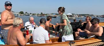 “Dat is bijvoorbeeld het nadeel van Sneek, daar gaat iedereen de stad in, daar is het één groot feest, of er gaan er een paar de tent in, dan ben je elkaar kwijt. En juist het voordeel van de Kaag: je zit er met mekaar. Altijd al, iedereen at met elkaar, alle moederschepen, gezinnen door elkaar, prachtig. Dat samen zijn is belangrijker dan de bestemming. Loosdrecht bijvoorbeeld, zo’n klassenevenement, dat is gewoon een topevenement. Kunnen jullie daar niet wat grappige dingen voor bedenken?”