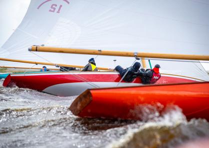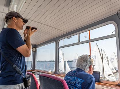 Het zijn niet alleen de veranderingen, maar het is ook de onvoorspelbaarheid, zo ervaren Huisman en Schurer op de slotdag van het NK Zestienkwadraat aan den lijve. ,,We profiteren ervan, maar ook dit maakt de omslag duidelijk”, aldus Huisman. Hij doelt op het feit dat er voor zondag geen wind was voorspeld, maar het ineens begon te waaien (tot tegen de 7 knopen, een bescheiden 3 Beaufort), waardoor nog drie goede wedstrijden konden warden gevaren. ,,Alle weermodellen konden de prullenbak in, er was geen peil op te trekken. Wat dat betreft hoef je je vooraf eigenlijk nooit meer rijk te rekenen of zorgen te ma ken, want het komt altijd anders. Als comité zagen we tegen deze dag op, maar het werd de relatief makkelijkste dag, want je kon ook gewoon voelen dat het een stabiel windje was. Dan sluit je zo’n serie met een goed gevoel af. Niet alleen wij ook de zeilers.”