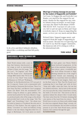 What type of closing message do you have for the readers of Reggaeville and Festiville? Cat Coore: To Reggaeville and Festiville I say thanks very much for the support for our music, thanks for the support for our country Jamaica keep on keepin’ on and I hope you enjoy the Third World album UNDER THE MAGIC SUN. You know it’s all covers yes, but we put our spin on them and I hope everybody enjoys it. Keep on supporting the music, we love you very much and Jah Bless.