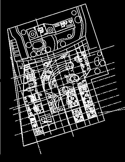 I. Structure moved to the north, the tree in the centre is kept on site and designates the form of pavilion.