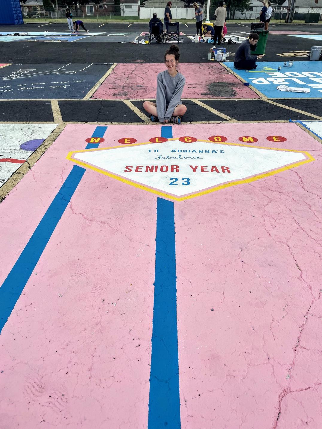 Here’s what some of the Class of 2023 had to say about the experience in these past weeks. Lilly Greenway explained, “I thought overall the parking spot painting was a fun way to bond with classmates and see their creativity. But I think I chose a complex design, which made it stressful.” Many of the seniors struggled with either their design choice or painting the spot itself. Chase Ruzynski believed that her end result outweighed the struggles of the painting process, and affirmed, “The parking spot painting was a great way to kick off the year!” Even those who had a rougher start to the day of painting were able to figure out a solution, like Katie Regnerus who ended up fixing her parking spot with spray paint.