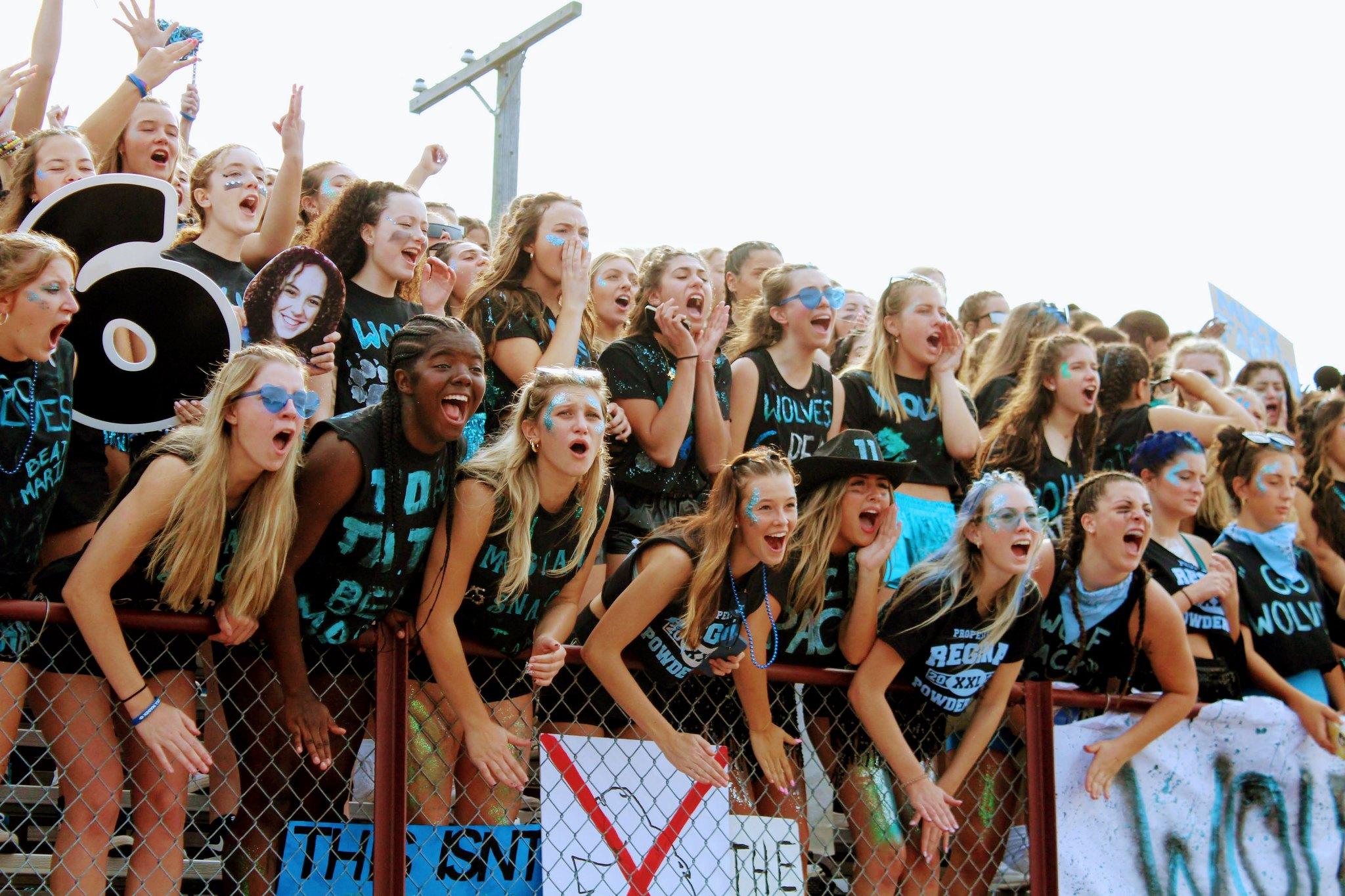 With this year’s Powderpuff match up between the Wolves and the Mustangs, Regina brought home the trophy for the sixth year in a row. The final score was 28 7. During the week leading up to the game, students were energized with music and dancing in the halls between classes, as well as the opportunity to decorate the halls in Carolina Blue and Black (the Class of 2023 colors). At the game itself, the Saddlelite Student section came alive with custom shirts, posters, decorations, and music to support the Wolves. Powderpuff is not only a great way to get the school excited but also foster unity. We have interviewed some girls on how excited they were, and what Powderpuff meant to them.