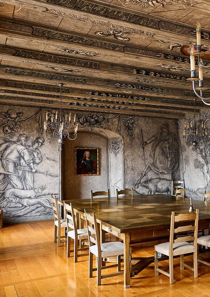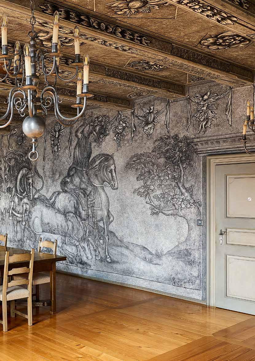Spektakulär ist die Ausgestaltung des Roggenbach-Saals im Stadthaus Laufen. Die in Grautönen gehaltenen Grisaille-Wandmalereien zeigen drastische Jagdszenen. Hoch zu Ross blasen Ritter und Knechte zum Halali auf Wildsau und Rindvieh. Erbauer des Herrschaftssitzes von 1670 war der Obervogt von Zwingen, Johann Frantz von Roggenbach. Die Balkendecke liess er für seine Gemahlin Maria Jacobea Münch von Rosenberg mit Rosetten verzieren. Johann Konrad, der ältere, in Schopfheim geborene Bruder wurde 1659 zum ersten Fürstbischof von Basel geweiht und legte um 1680 den Grundstein für den Dom zu Arlesheim. In der Türnische des Roggenbach-Saals prangt das Porträt von Obervogt Franz Joseph Conrad. Mit Perücke und Orden, Blauband und rotem Überwurf ausstaffiert, bezeichnet Maria Anna Eva Blarer von Wartensee ihren ritterlichen Gatten als «wunderlichen Roggenbach». Fünf Generationen lang beherrschte die Dynastie das Laufental. Der zweite und letzte Fürstbischof von Basel, Franz Joseph Sigismund residierte von 1782 – 1792 in Pruntrut. Er musste vor den eindringenden Franzosen fliehen. 1869 wurde das Stadthaus Laufen in ein Spital umgebaut. Seit 1977 ist es Regierungssitz des siebenköpfigen Stadtrats. Am Untertor gehört die Barockkirche St. Katharina zu den bedeutendsten Sakralbauten im Laufental.