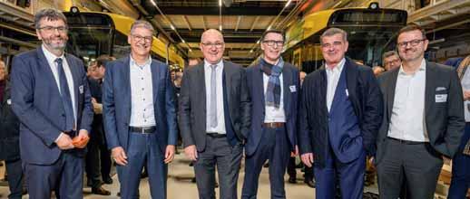 Gruppenleiter im Depot Waldenburg war Beat Furler für das Zusammenbauen der zehn Stadler Rail-Züge mitverantwortlich. Sie wurden Maria Lymar aus Liestal und Freund Robin Schneider aus Allschwil waren beeindruckt von der neuen Technik, die sogar autonomes Fahren möglich macht, «auch wenn wir davon hoff entlich noch nicht gerade morgen Gebrauch machen müssen.» Peter Füglistaler, Direktor Bundesamt für Verkehr, BLT-Direktor Andreas Büttiker, Regierungsrat Isaac Reber, BLT-Vizedirektor Fredi Schödler, Peter Spuhler, Chef beim Zugbauer Stadler Rail, und BLT-Verwaltungsratspräsident Christoph B. Bühler (v.l.).