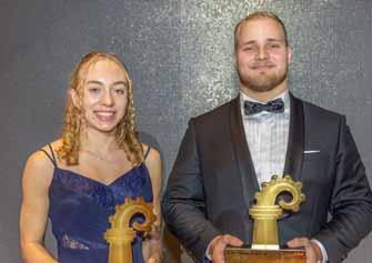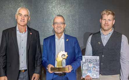 Svea Ursprung aus Pfeffi ngen gehört dem Juniorinnen Nationalteam im Artistic Swimming an, Schwinger Lars Voggensperger aus Schönenbuch holte sich am ESAF 2022 einen Kranz. für das OK und die über 6000 Helferinnen und Helfer des ESAF 2022 nahmen Präsident Thomas Weber (Mitte) und Geschäftsführer Matthias Hubeli (r.) einen Anerkennungspreis von Markus Lauener, Obmann des Eidgenössichen Schwingerverbands, entgegen. eidgenössischem Eichenlaub folgt Baselbieter Edelmetall: Adrian Odermatt holt sich nach seinem sensationellen dritten Platz am ESAF 2022 auch den Baselbieter Sportpreis. Ein Leben für den Fussball: Sportjournalist Daniel Schaub (l.) aus Sissach erhielt einen Anerkennungspreis; die Laudatio hielt Pascal Buser, Geschäftsführer beim Fussballverband Nordwestschweiz. Moderierten die dramaturgisch spannend aufgebaute Award-Show: Sportamt-Chef Thomas Beugger (r.) und Severin Furter, Redaktor bei der «Volksstimme». ist ein politischer Auftrag»: Die Baselbieter Sportministerin Monica Gschwind (r.), Landratspräsidentin Lucia Mikeler Knaack und Stephan Burgunder, Gemeindepräsident Pratteln. Swiss Urban Ländler Passion: SULP sorgten für ein musikalisch währschaftes Intermezzo, das genauso nach Cheeseburger wie nach Älplermagrone roch. Foto: Jasmin Haller