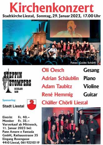 20. – 25.2.2023 | Rotstab-Cabaret KV-Saal Liestal Vorfasnacht der Liestaler Rotstab Clique mit allem, was dazu gehört: Rahmenstücke über die Baselbieter Prominenz, Fasnachtsmusik, Schnitzelbängg und die Liestaler StedtliSingers. rotstab-clique.ch