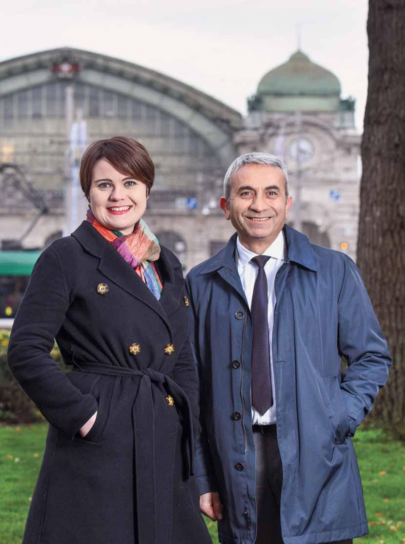 scheitere. «Aber damit lernt man umzugehen – das Wichtigste ist, sich nie entmutigen zu lassen», fügt der Politiker hinzu. «Genau», fi ndet Sarah Wyss, «und in diesen Momenten hilft es, dass man nicht alleine ist, sondern ein Team.» Tatsächlich tauscht sich das Basler SP-Duo in Bern laufend aus. «Während der Session sehen wir uns täglich, da liegt es nahe. Aber auch dazwischen arbeiten wir zusammen. Gemeinsam kann man einfach so viel mehr erreichen!», fügt Mustafa Atici hinzu.