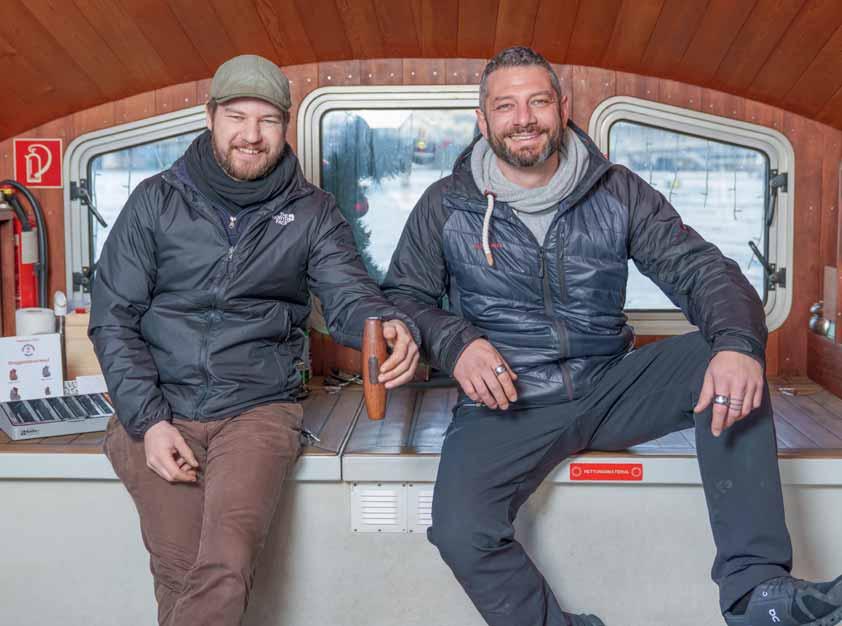 antworten Alex Guerrieri, neuer Pächter der Klingental-Fähre «Vogel Gryff » und Michael Sackmann, neuer Pächter der St. Johann-Fähre «Ueli».