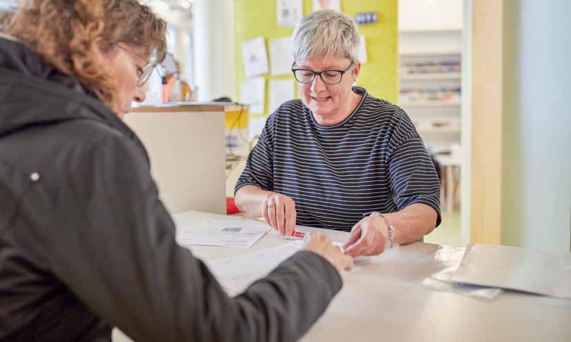 Aline Freier, Grégory Gay, Nathalie Manthey und Marianne Hürlimann (v.l.) sorgen am Empfang dafür, dass alle ihre gewünschten Branchen fi nden. Oft werden sie gefragt, ob die Messe Eintritt kostet. «Nein, es ist kostenlos.»