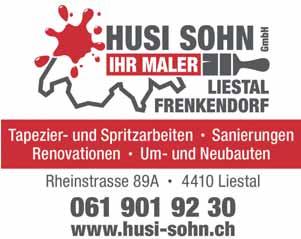 Auflage: 26 300 Ex. kostenlos an alle Haushaltungen und Post fächer in Liestal, Lausen, Arisdorf, Hersberg, Nusshof, Seltisberg, Lupsingen, Bubendorf, Ziefen, Reigoldswil, Lampenberg, Hölstein, Ramlinsburg, Frenkendorf, Füllinsdorf, Nuglar, St. Pantaleon und Büren.
