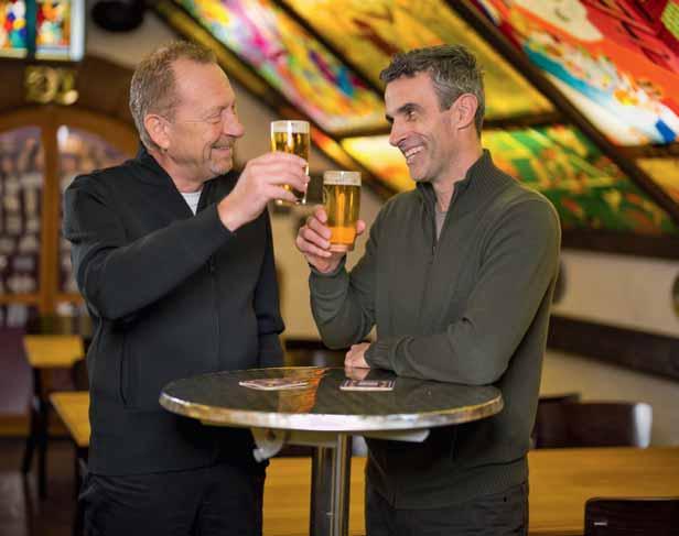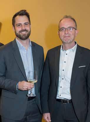 Ein Glas Wein und gepfl egter Smalltalk: Für Stephan Preiswerk, (l.) Leiter Private Banking, und Michael Baumberger, Leiter kmu-Kunden, ist das ein gefreuter BKB-Kundenanlass.