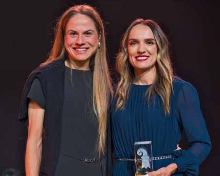 Glamouröser Auftritt neben Ring und Piste: Mountainbikerin Anna Weinbeer (l.) , VizeWeltmeisterin in der Disziplin Marathon, und WBO-Boxweltmeisterin Gabi Timar wurden gemeinsam als Sportlerin desJahres ausgezeichnet.