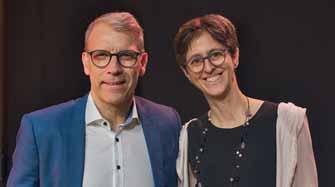 Stolzes Gastgeber-Duo: CEO Regula Berger und Adrian Bult, Präsident des Bankrats, freuen sich, dass sich die BKB seit 20 Jahren als Hauptsponsorin der Basler Museumsnacht engagiert.