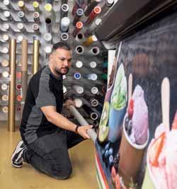 Darüber hinaus wurde das Sortiment um viele weitere Beschriftungsmöglichkeiten und Lösungen erweitert, die auch im Privatbereich von Interesse sind. «Ein aktueller Trend ist die Aufwertung von in die Jahre gekommenen Möbeln durch die Applikation von Folien mit unterschiedlichsten Oberflächen und Effekten. Das machen wir sowohl für Grosskonzerne, Arztpraxen wie auch für Privathaushalte, vor allem im Bereich Küchen», sagt Julia Leupin. Ebenfalls zahlreiche Möglichkeiten bietet Carkos für innovative Sonnen- und Sichtschutzlösungen für Gebäude. Nicht zuletzt werden auf Wunsch auch für Privatkunden Bilder und Beschriftungen auf Fahrzeugen angebracht. «Besonders gefragt ist das für Wohnmobile, die mit einem individuellen Aufdruck erst zum richtigen Zuhause auf Rädern werden», sagt Zigi Yurdagün.