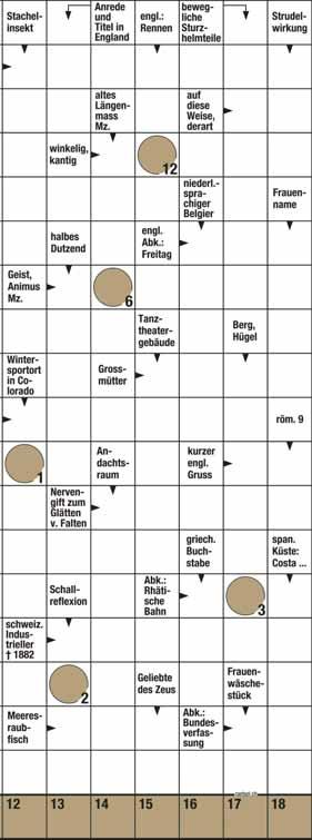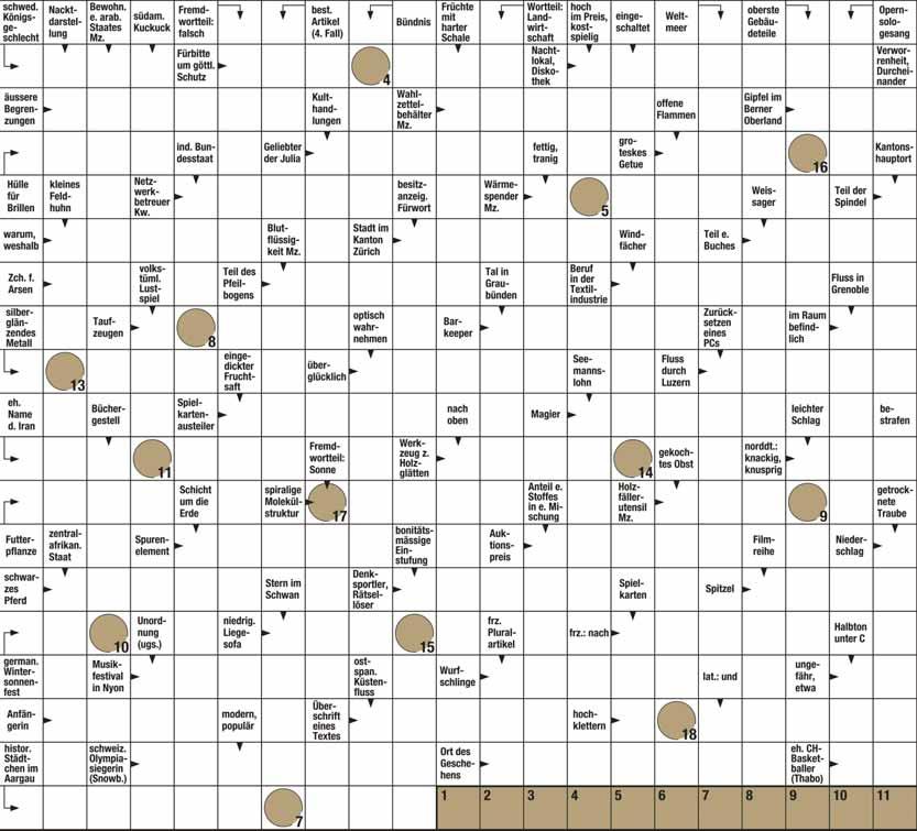 Finden Sie das Lösungswort? Mitmachen: lima-magazin.ch/ wettbewerb. Füllen Sie den elektronischen Talon aus. Teilnahmeschluss ist der 15. Dezember 2025. Unter allen richtigen Antworten verlosen wir 3 x 2 Tickets für ein Konzert im Kulturhotel Guggenheim nach Wahl (vorbehaltlich Verfügbarkeit natürlich). Falls es ein Weihnachtsgeschenk werden soll: Das schaffen wir! Viel Glück.