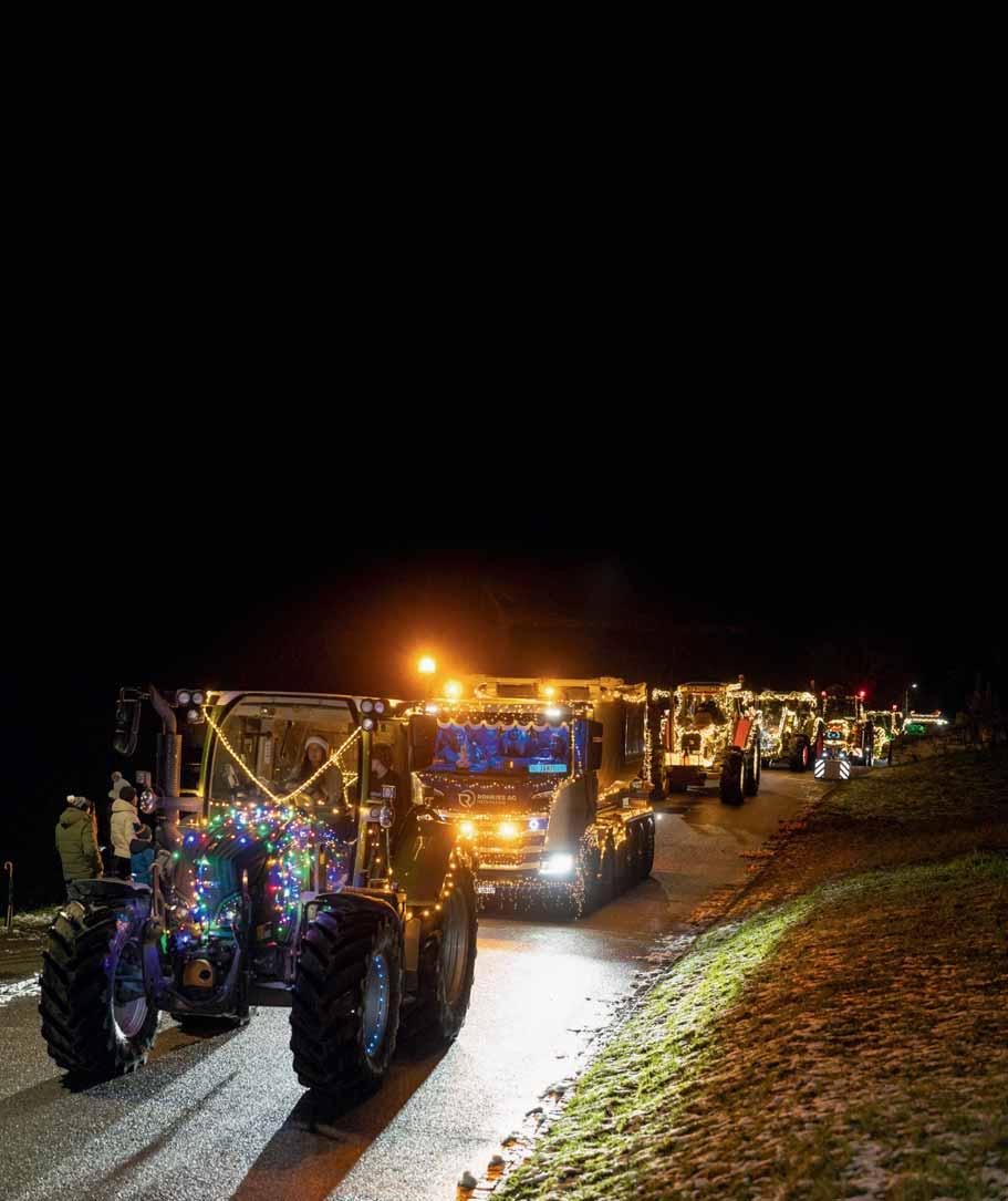 Am Start stehen vor allem Traktoren, manch einer darunter mit mehreren Stunden Anfahrt. Natürlich tummelt sich manch ein neueres Modell im Feld, klar; die meisten gehören allerdings schon seit Längerem zum alten Eisen. Wie Martin Utz’ Fiat 640, der in diesem Jahr 50 wurde. Er führt übrigens traditionell die Traktoren innerhalb des Trosses an, während Mitstreiter Toni Fink mit seinem Sohn und zwei reich geschmückten Christbäumen auf seinem Trike die Vorhut der Parade bildet. «Das macht mich schon stolz, diese unglaubliche Parade anzuführen.»