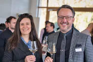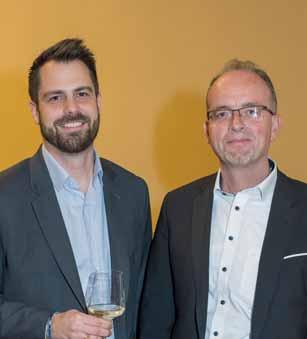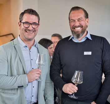 Ein Glas Wein und gepfl egter Smalltalk: Für Stephan Preiswerk, (l.) Leiter Private Banking, und Michael Baumberger, Leiter kmu-Kunden, ist das ein gefreuter BKB-Kundenanlass.
