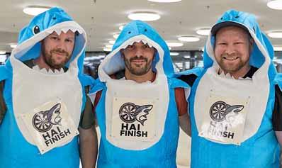 Für die grossen Stars – und natürlich für die Party: Die «Hai-Finishe» Kari, Patrick und Landi (v.l.) aus Langenthal nahmen einen beachtlichen Weg auf sich.