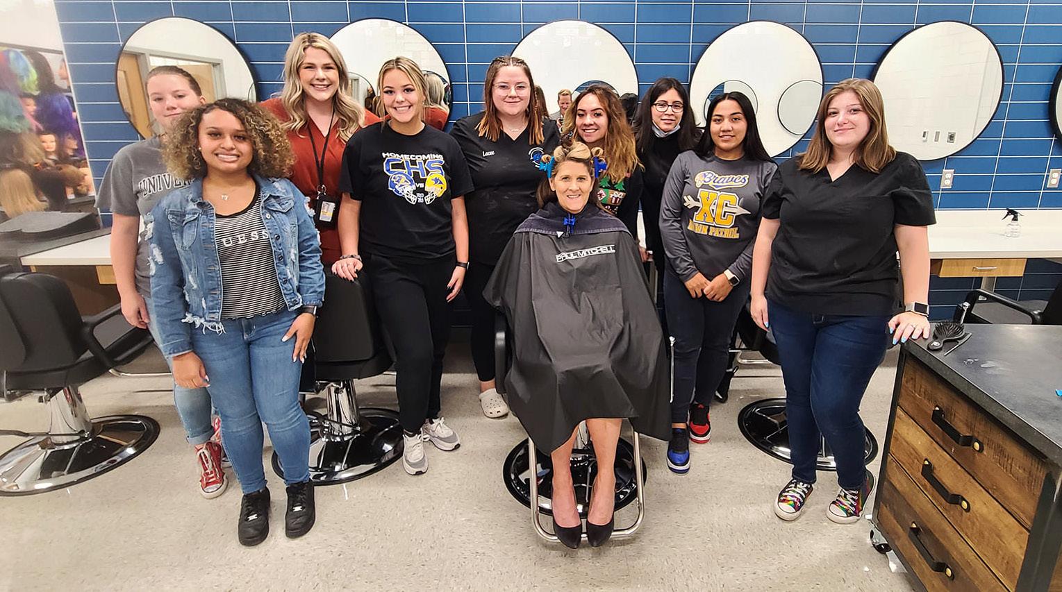 “Personally, when Dr. Knowlton asked to come and get a service at our salon, I was super excited! It’s not everyday that an important leader in the district trusts high school students with their hair,” McKenna Smith, Dual Credit Cosmetology Instructor at Community High school, shared. “I was humbled by her kindness and support of our program and excited to be able to show her what the Blue Brave Nation Nail Salon and Spa is all about.”