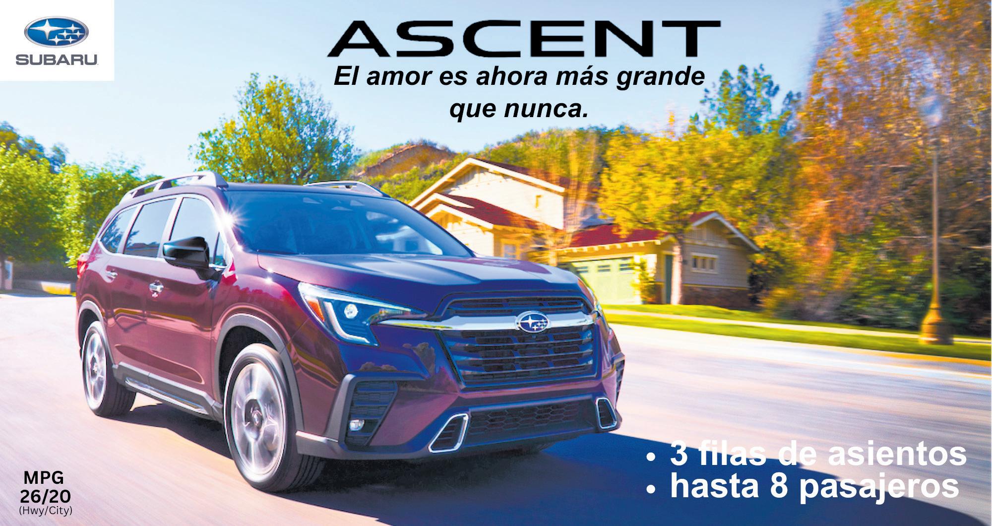oportunidad de visitar nuestros concesionarios en San Juan, tel. 787-793-2828 o enCaguas, tel. 787-6790414, para conocer los vehículos más seguros en el mercado puertorriqueño. Para información adicional, entre al sitio web del modelo: https://bit.ly/ascent-pr. También puede encontrarnos y seguirnos en los medios sociales, como: #SubaruPuertoRico