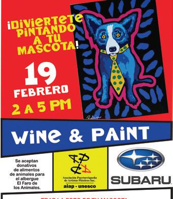 El Wine & Paint es el segundo evento que SUBARU Puerto Rico realiza en colaboración con la Asociación puertorriqueña de Artistas Plásticos (APAP). Esta vez la actividad estará dedicada a celebrar y apoyar a las mascotas por medio de la iniciativa Conducidos Ayudar, de SUBARU Puerto Rico. La propuesta otorga donativos al refugio de mascotas El Faro De Los Animales, para apoyarlos en el rescate, transporte y adopción de mascotas en nuestra Isla.