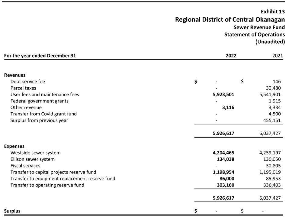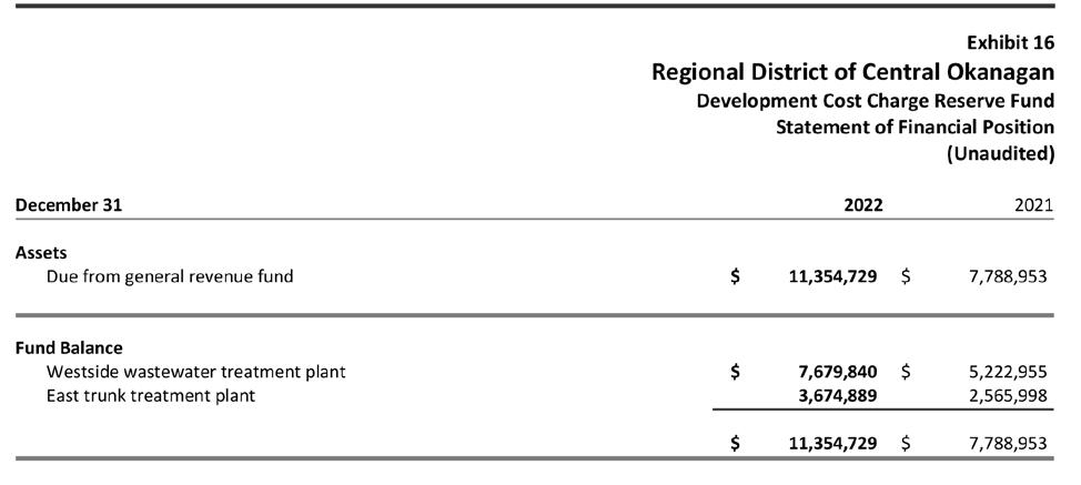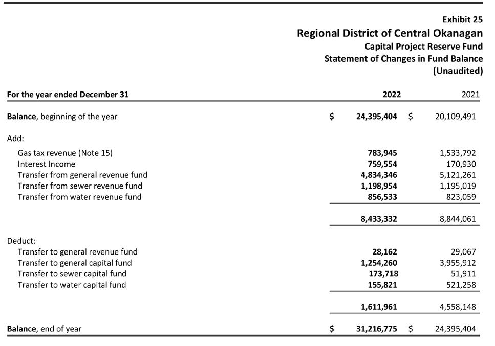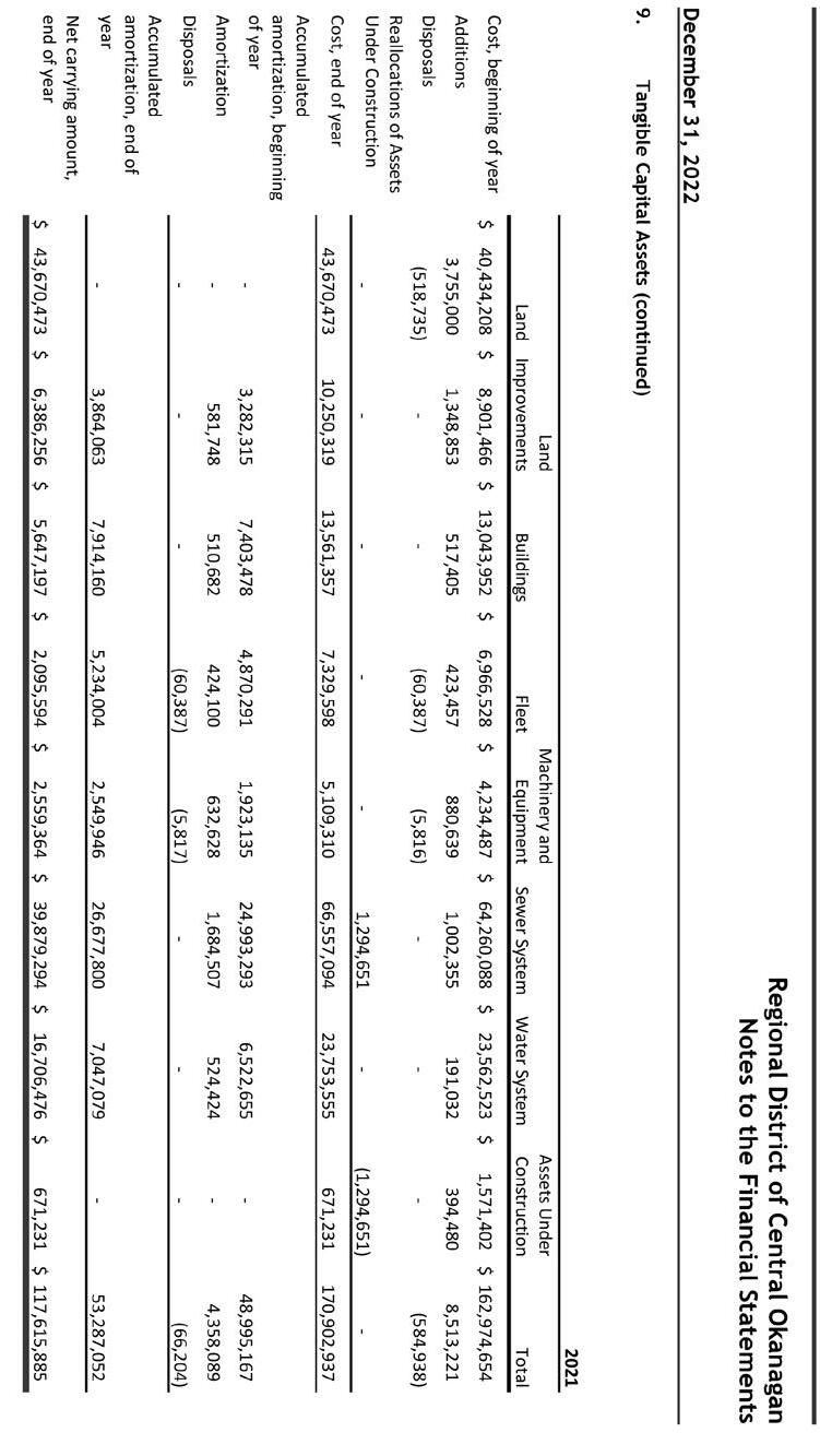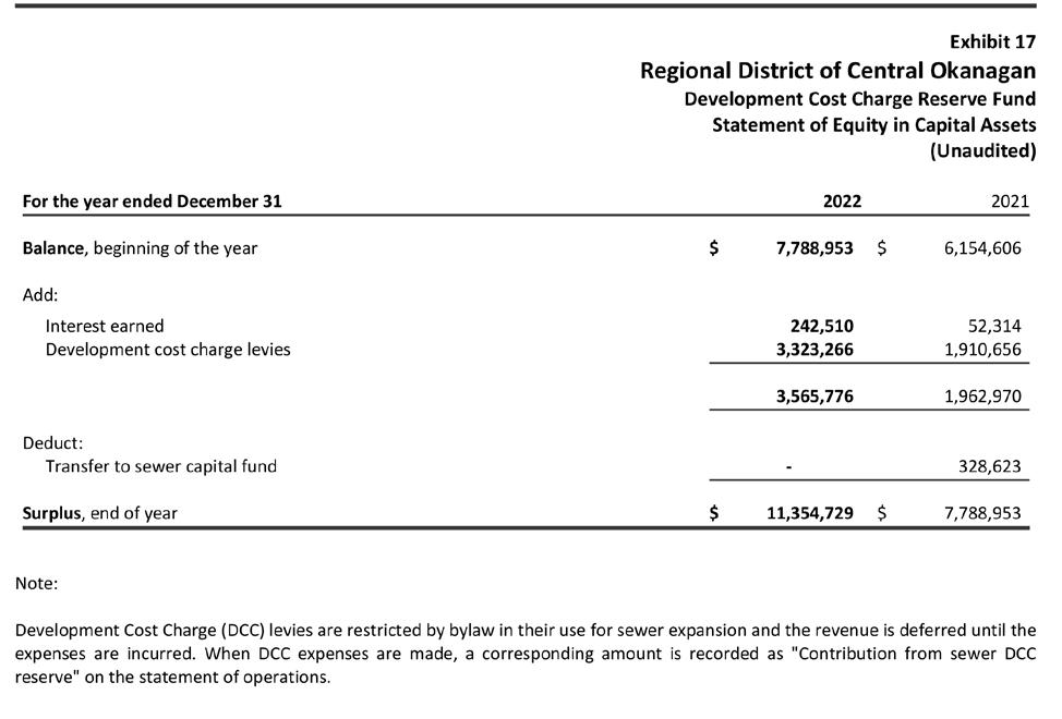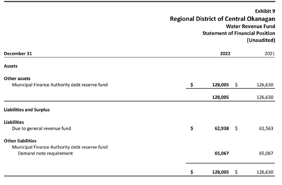 The RDCO is in a Net Asset position. This means that the district has sufficient financial assets ($190.7M) to settle existing liabilities ($147.0M). As the RDCO’s total assets exceed total liabilities, the RDCO is in an accumulated surplus position, having net positive resources that will be used to provide future services. The RDCO’s annual surplus was $7.2M (2022 $7.1M). The RDCO generated approximately $20.1M in cash from operations and those funds were used to acquire $3.0M in tangible capital assets, repay $7.8M in financing. The remaining was added to available cash resources.