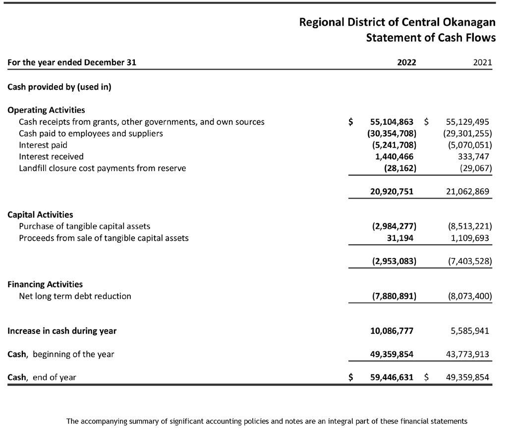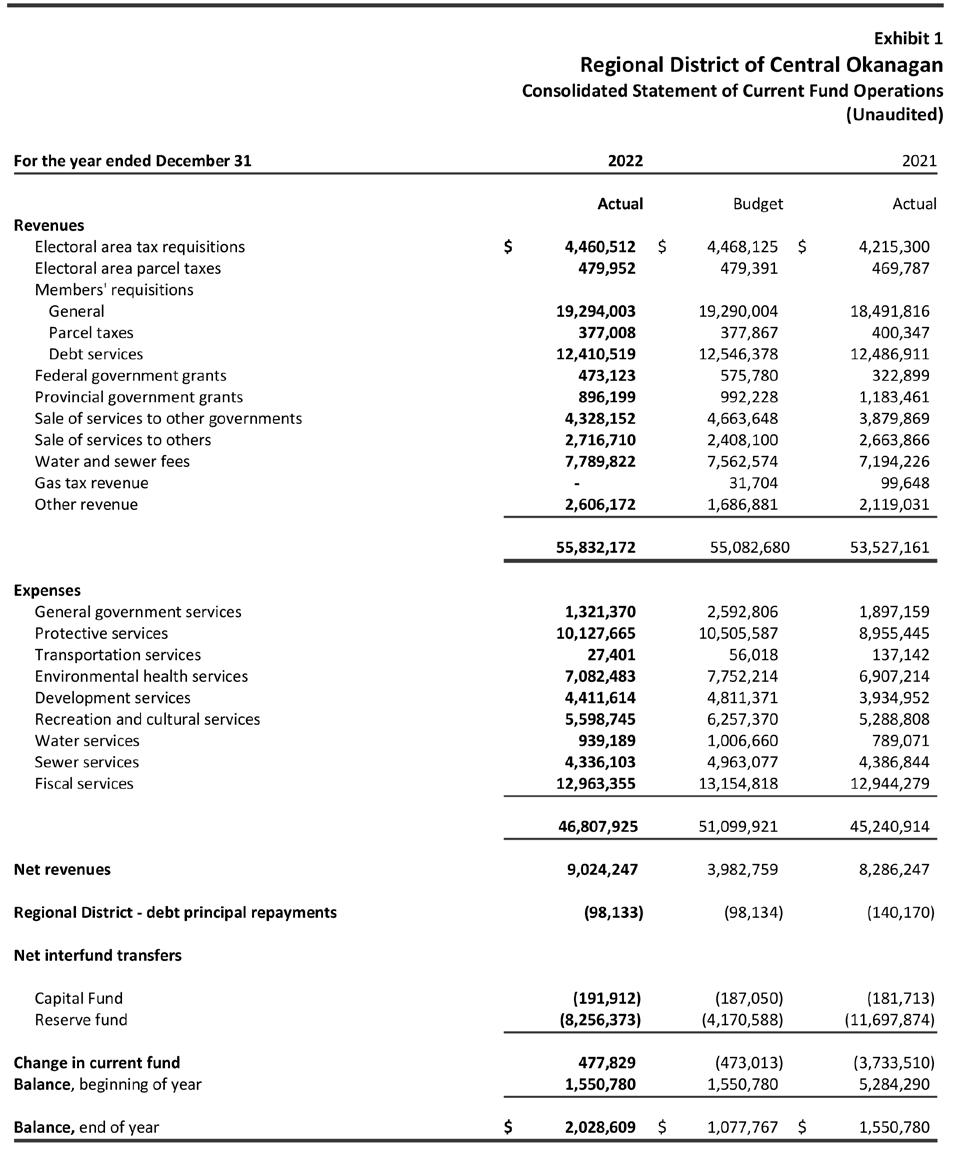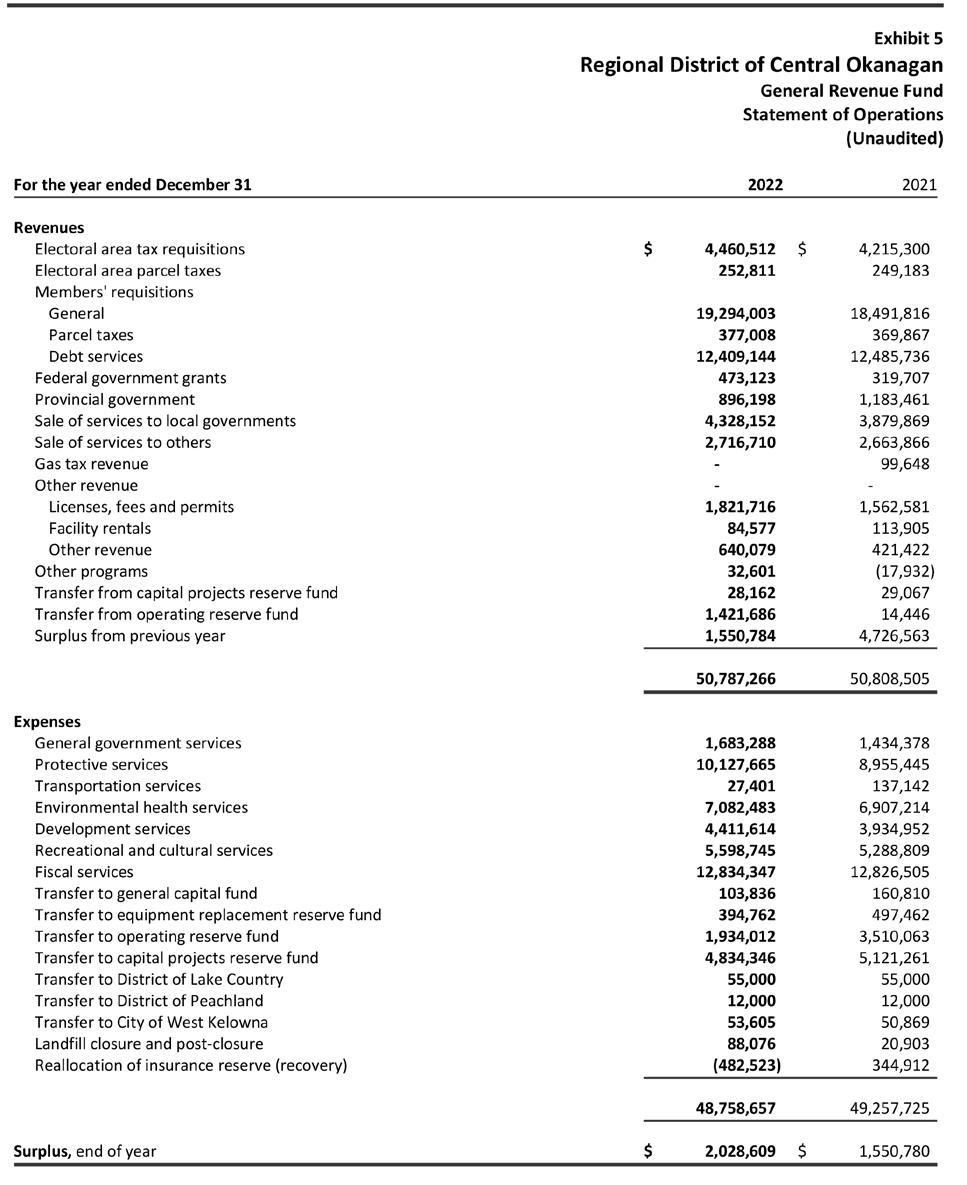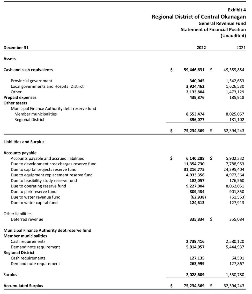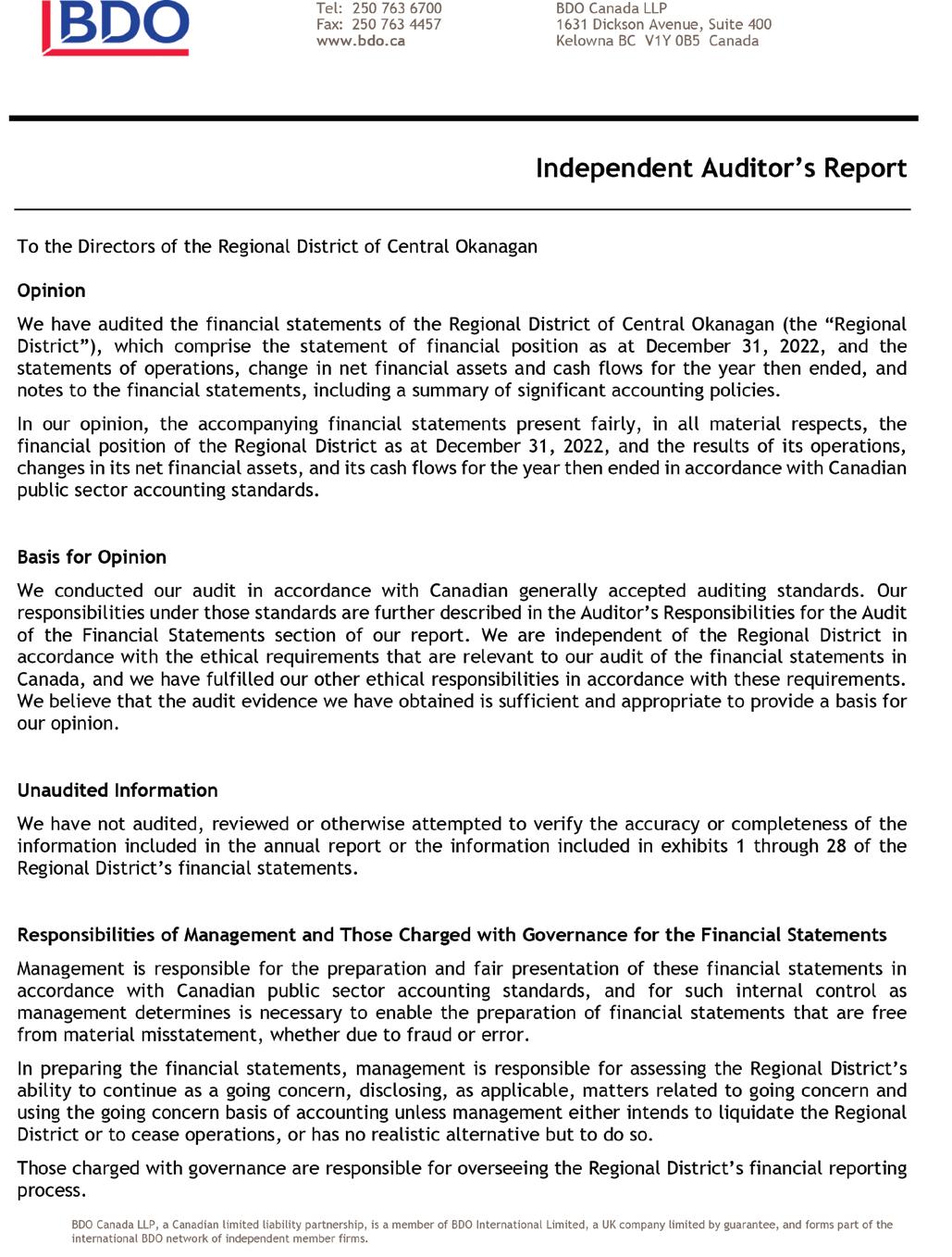 In accordance with Section 376 of the Local Government Act and Section 167 of the Community Charter, the Audited Financial Statements were presented and approved by the Regional Board on May 4, 2023. The format and presentation of these financial statements are in accordance with Generally Accepted Accounting Principles (GAAP) for local government as recommended by the Public Sector Accounting Board (PSAB) standards (PSAS) of the Chartered Professional Accountants of Canada and have been applied on a basis that is consistent with that of the preceding year.