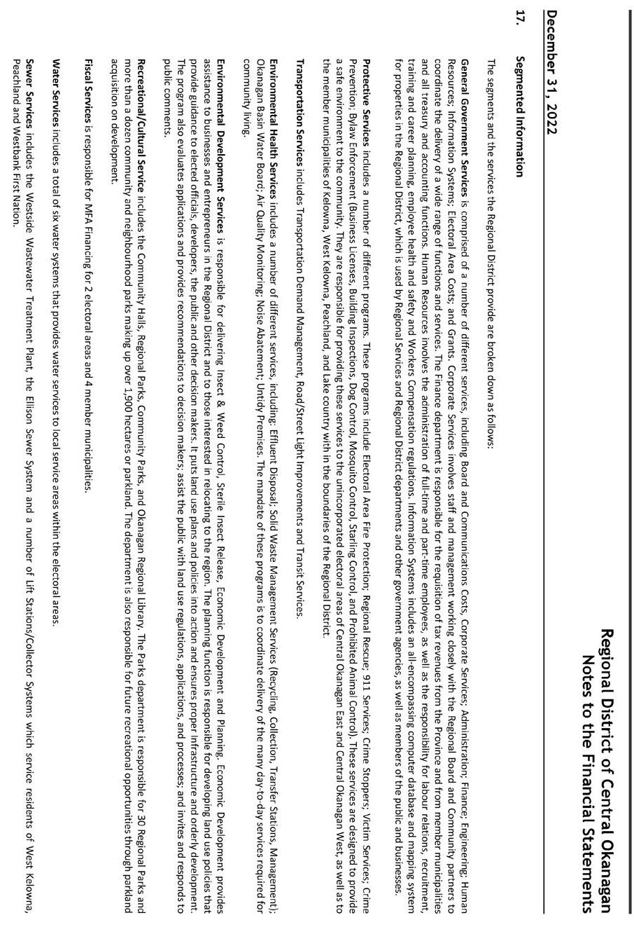 The Regional District’s programs and services cross a wide range of areas that are important to residents of the Central Okanagan.