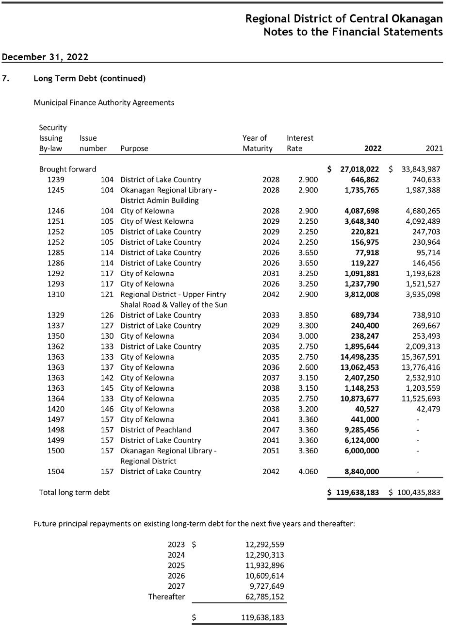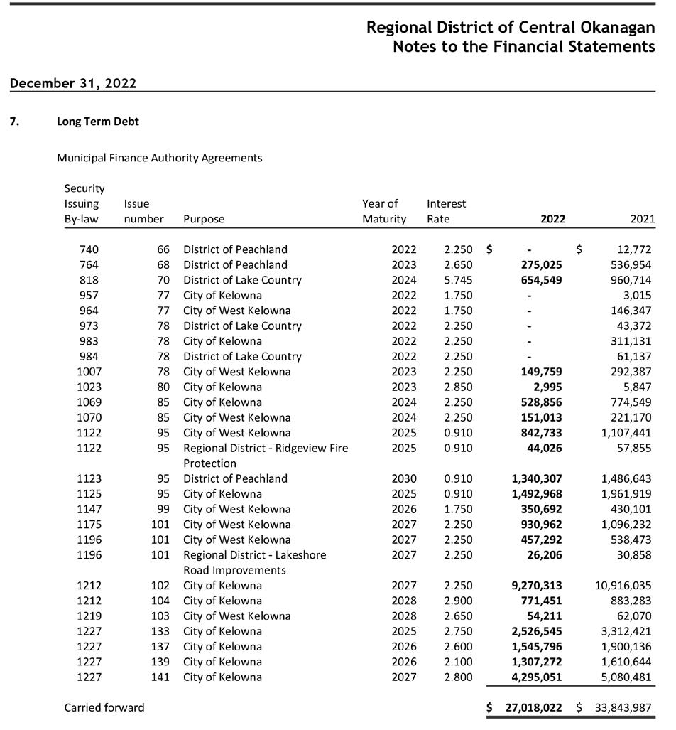 In 2022 the Central Okanagan Regional Hospital District was expected to pay an estimated $7.3-million toward existing debt retirement and interest charges.
