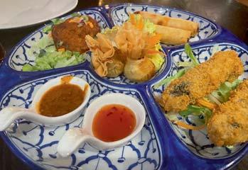 Forstarters,wedecidedtosharea mixedplatterfortwopeople(£9.95) whichoffersaselectionofvegetablesand meat.Thedishwasservedonasizzling platterwithabaseoffriedonionsand contained,twosamosas,twomeatspring rolls,twosheekkebabs,twopiecesof chickentikkaandtwopiecesoflamb tikka.Weweregivenindividualplates withasidesaladtosharetheplatterout. Thesamosaswerelightandcrispy,and thefillingwasperfectlyseasoned.The meatwascookedauthenticallyover charcoalandmeltedinthemouth.After thegenerouslysizedstarter,thetablewas cleared,andweweregivenalittletime beforethemainwasserved.