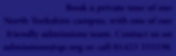 Queen Ethelburga’s Collegiate Queen Ethelburga’s Collegiate Welcoming day students from 3 months to 19 years and boarders from Year 3 Book a private tour of our North Yorkshire campus, with one of our friendly admissions team. Contact us on admissions@qe.org or call 01423 333330. “You cannot help but be impressed by the sheer ambition of QE. Facilities are spectacular, staff committed and clearly able, students delightful.” The Good Schools Guide www.qe.org | admissions@qe.org | 01423 333330 | York YO26 9SS