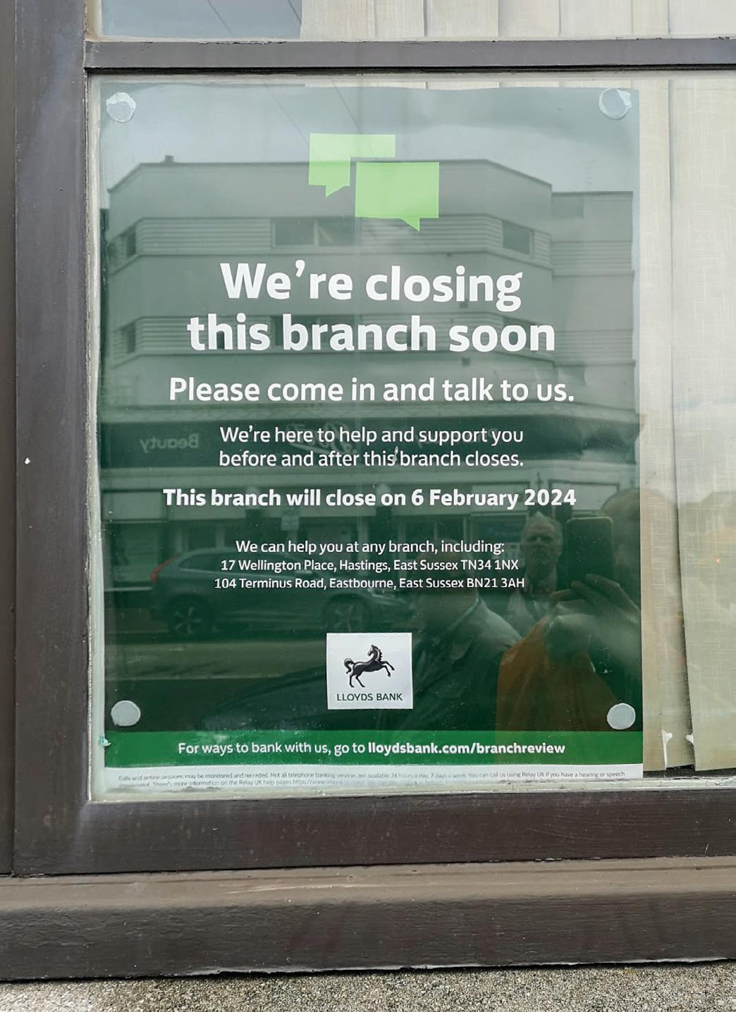 Lloyds confirmed this week that the Bexhill branch will close its doors for the final time on February 6 next year.