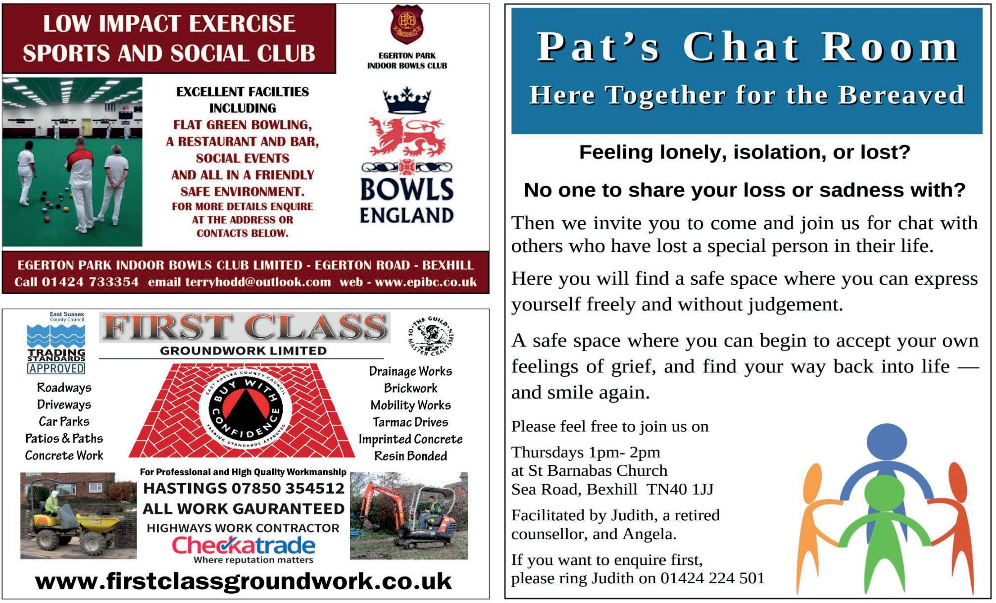 The Rotary Club of Bexhill undertakes numerous charity and fun social events during the year and is always keen to have new members to join us. For more details or to go along to one of the club’s meetings, visit the website at www.bexhill.rotaryweb.org or telephone Stephen on 01424 732100.