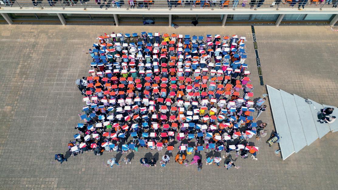 Meanwhile, more than 300 residents gathered to help create a massive Union Jack image taken from a drone at the De La Warr Pavilion.
