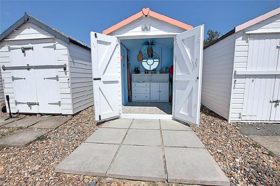 The Leas, Frinton-on-Sea – £60,000. This stunning beach hut in Frinton-on-Sea comes with plenty of space to really feel at home on the beach. It includes a large window opening up to the sea and beach view and kitchen equipment. The hut