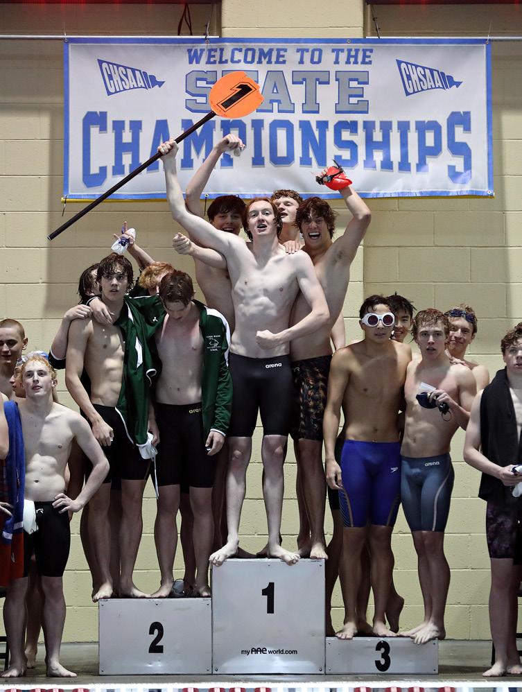 May Twenty-four Raider swimmers captured a ninth State Meet title and another third-place national ranking Jason Tanaka '01 won the 100 fly, and he competed on the winning medley relay along with Casey Lowdermilk '03, Noah Pavlakovich '01 and Tom Canny '01
