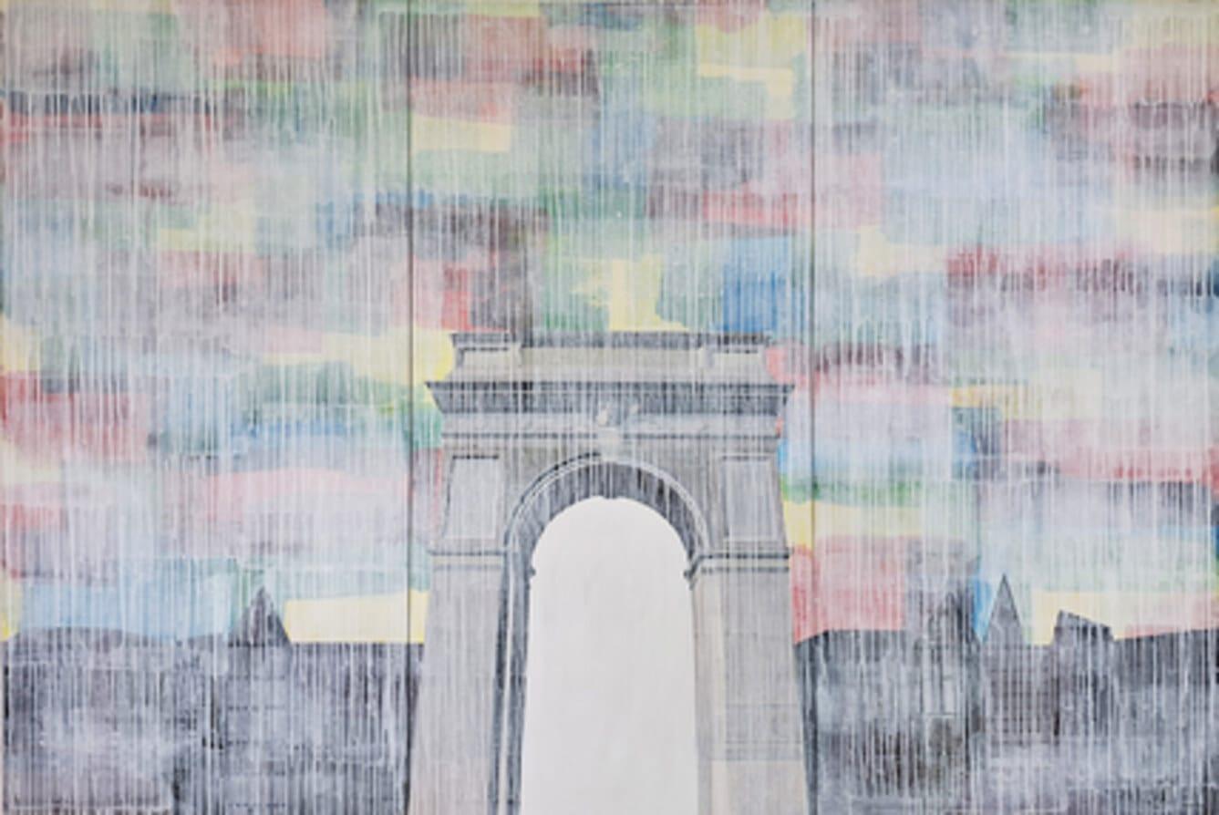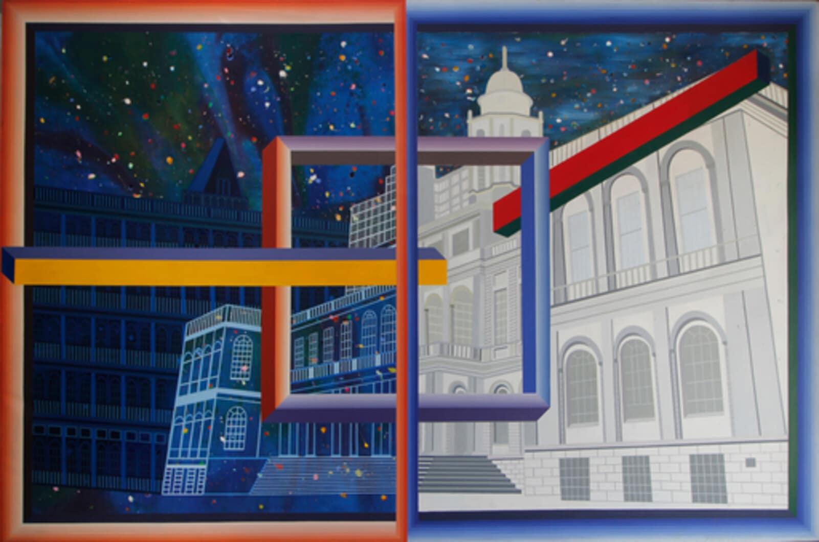 Wianta’s depiction of New York City, dominated by its iconic skyscrapers, is a testament to his signature style during the quadrangle period. “New York Town Hall” presents the cityscape with a precise color scheme and Wianta’s cubist quadrangles. The majesty of the World Trade Center is eloquently conveyed in Wianta’s etchings, while the Statue of Liberty shines resplendently as a New York/Manhattan landmark, juxtaposed with volcanic lava as a poignant reminder of Run Island. Beneath the skyscraper shadows, Fifth Avenue glistens (pictured).
