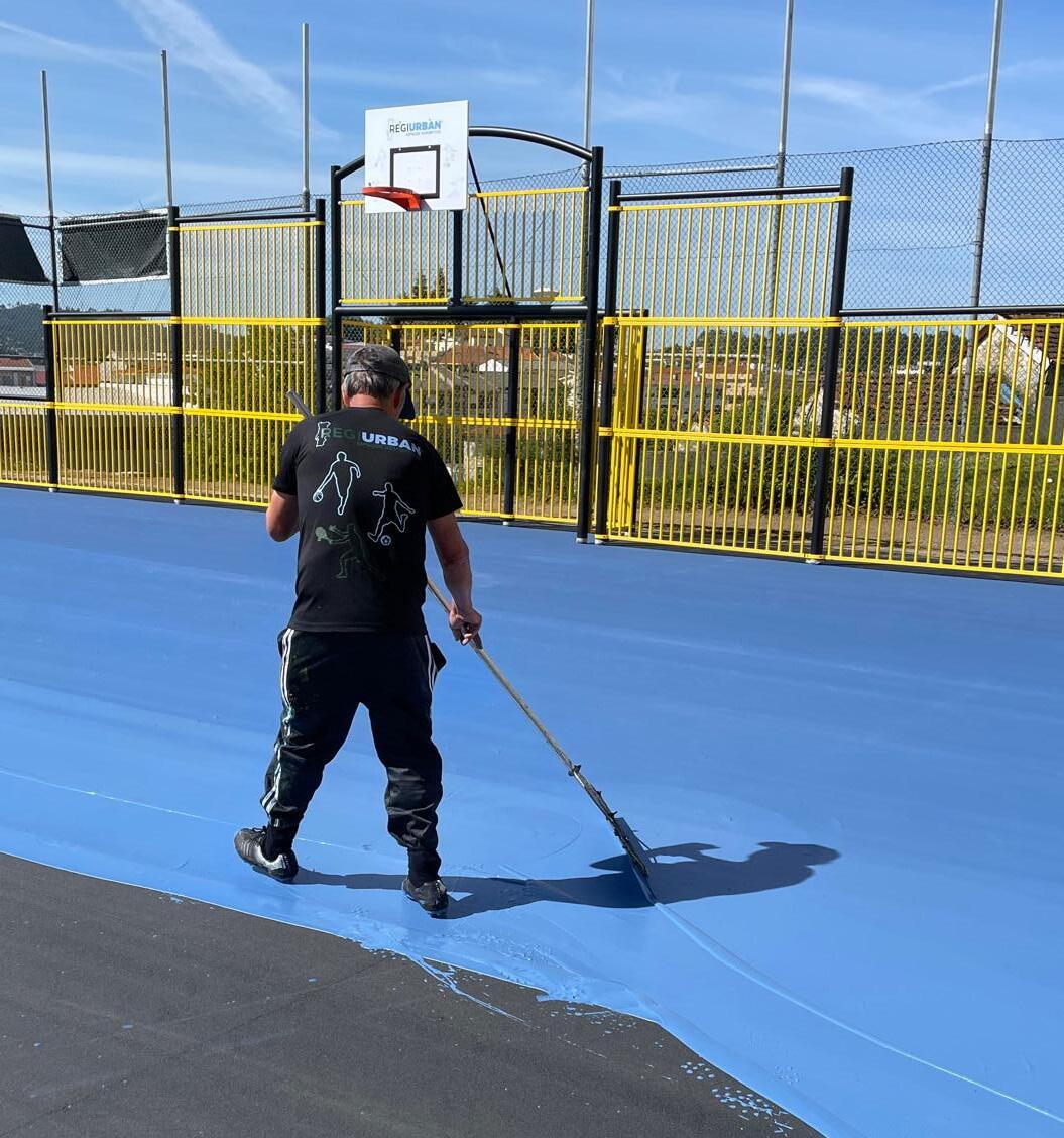 Tinta específica para pintura de pisos desportivos em betão normal e betão poroso.