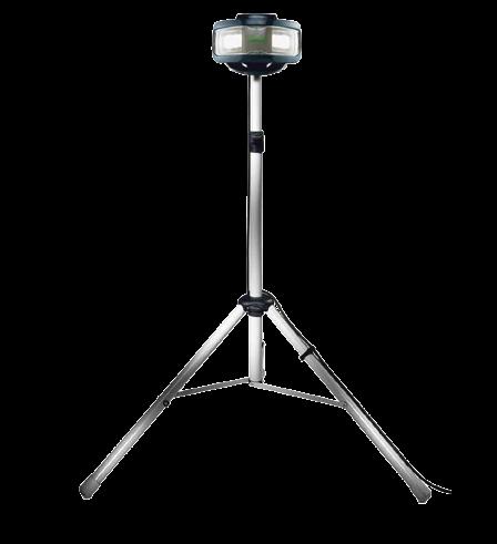 Het lijkt wel een ruimtewezen, deze bouwlamp op statief van Festool. En het is ook een vriend in het duister, want